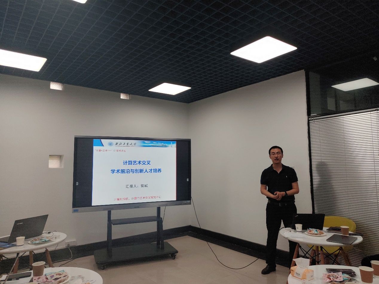 组织举行了第二十一期“01学术沙龙”,也是第一期以计算与艺术交叉创新为主题的活动。本次沙龙围绕 “计算+艺术=∞”这一主题,邀请了学校艺教中心刘韬副教授和学院郭斌教授进行报告交流,活动由郭斌主持,共计32名师生参加。