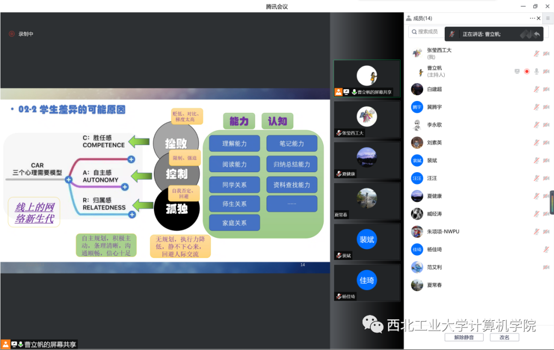 王云岚副教授从为师之道、学业规划、日常管理、风险管控等8个方面介绍班级管理心得,强调了因材施教、分类指导等细节管理的重要性。王云岚老师在分享中还提出,“管理好学生的最好时机是大一开学,其次是现在”,班主任老师应充分发挥自身专业优势,全面提升班级学生的专业素养及创新能力。紧接着,数学与统计学院裴斌教授作《全过程精准画像、全方位整合资源、全覆盖帮扶提升》专题分享。裴斌老师强调了坚持为党育人、为国育才的初心使命,介绍了“以学生为中心、润物细无声”的班级育人理念,提出了贯穿班级管理始终的“三航筑梦、促学笃行、强基固本、创新赋能、塑造价值”思想,并就“导学+必学+互学+督学”的班级管理模式进行了着重分享。随后,中国三级片