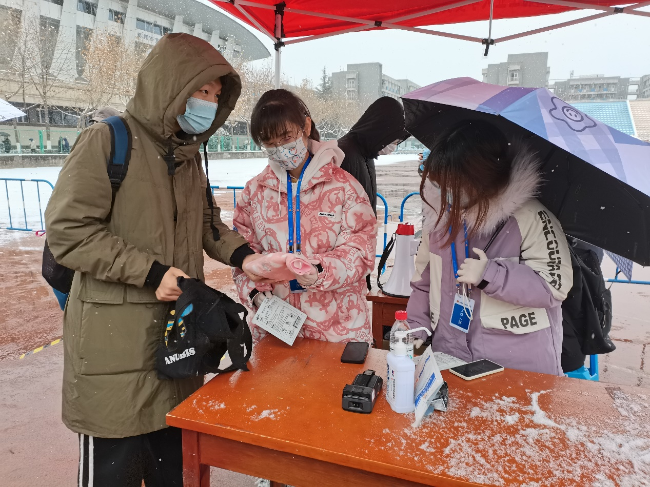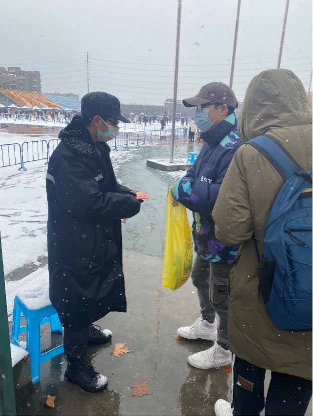 19级学生党支部组成志愿者团队,为在风雪中坚守岗位的志愿者、医护人员以及工作人员送上御寒物资。以一颗颗感恩的心感谢全体捍卫校园安全的医护人员和全体工作人员。在大雪纷飞之中给西工大校园再次添加了一些温暖。相信在众人共同努力之下,我们一定会安全地度过这个寒冬。