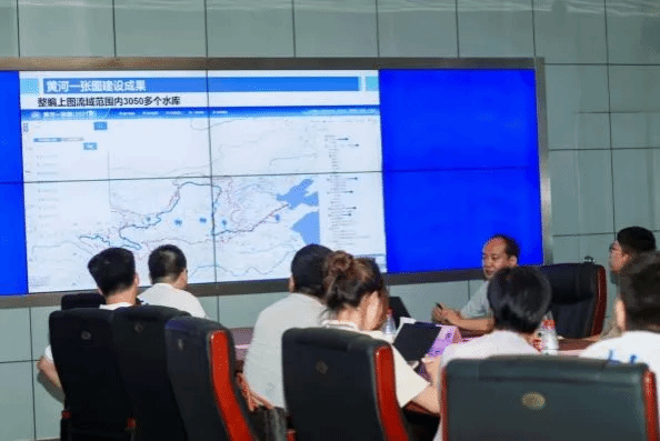 参观结束后,带队老师张秀伟、张世周,学院团委书记靳宇琪及实践队成员与黄委信息中心开展座谈会。黄委信息中心副主任赵嵬介绍单位情况,交流数字孪生底板建设工作。这次交流对于促进双方进一步深入合作和大学生创新成果转化都具有重要意义。