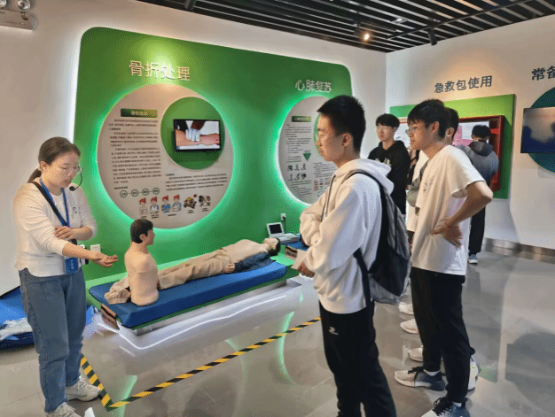 在生活安全体验馆中,支部团员参观了交通安全、消防安全、自然灾害应对、救援安全等多个主题展区。模拟醉驾体验,深刻认识到酒后驾车的危险性;学习使用灭火器,掌握了火场逃生的基本技能;体验不同等级的地震,学会了如何在灾害发生时保持冷静,采取有效的自救措施;学习并应用多种常用急救方式,感受到急救给患者伤者带来的希望与作为施救者带来的成就感。