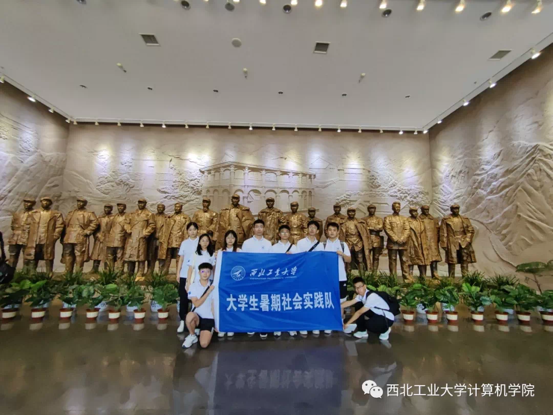 实践队成员在陈列馆遵义会议二十位参会人员雕像前合影