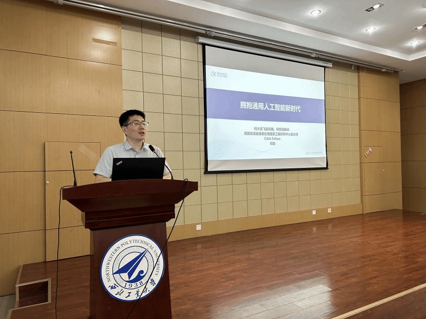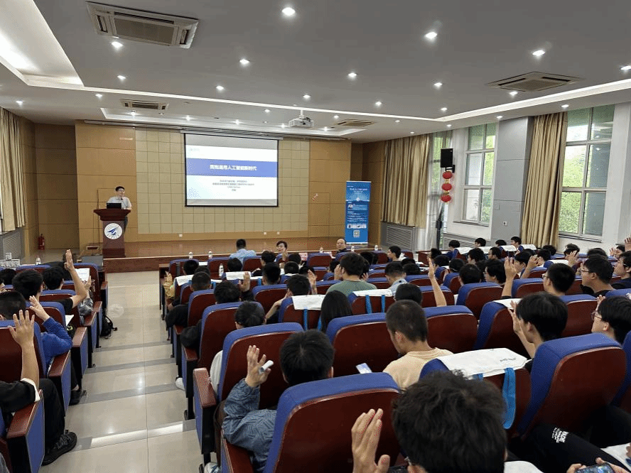 新报告厅为学校师生作题为《拥抱通用人工智能新时代》的专题报告。