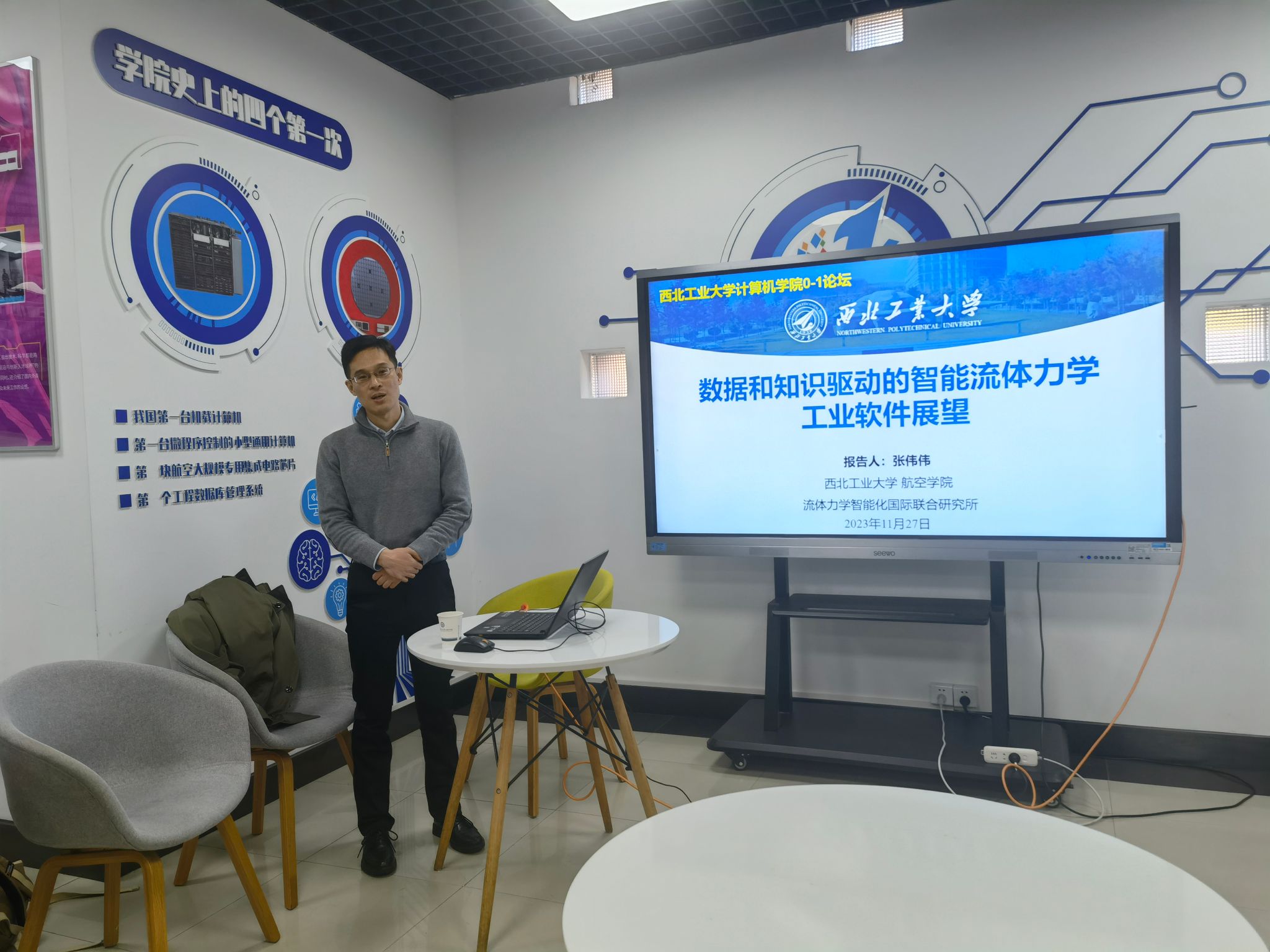 开展了第四十四期“01学术沙龙”活动,本次沙龙主题为“数据和知识驱动的新一代流体力学工业软件展望”,活动围绕这一主题,突出学科交叉创新特色,充分探讨了CAE工业软件的研究发展。学院特别邀请航天学院张伟伟教授作学术报告,活动由尚学群院长主持。