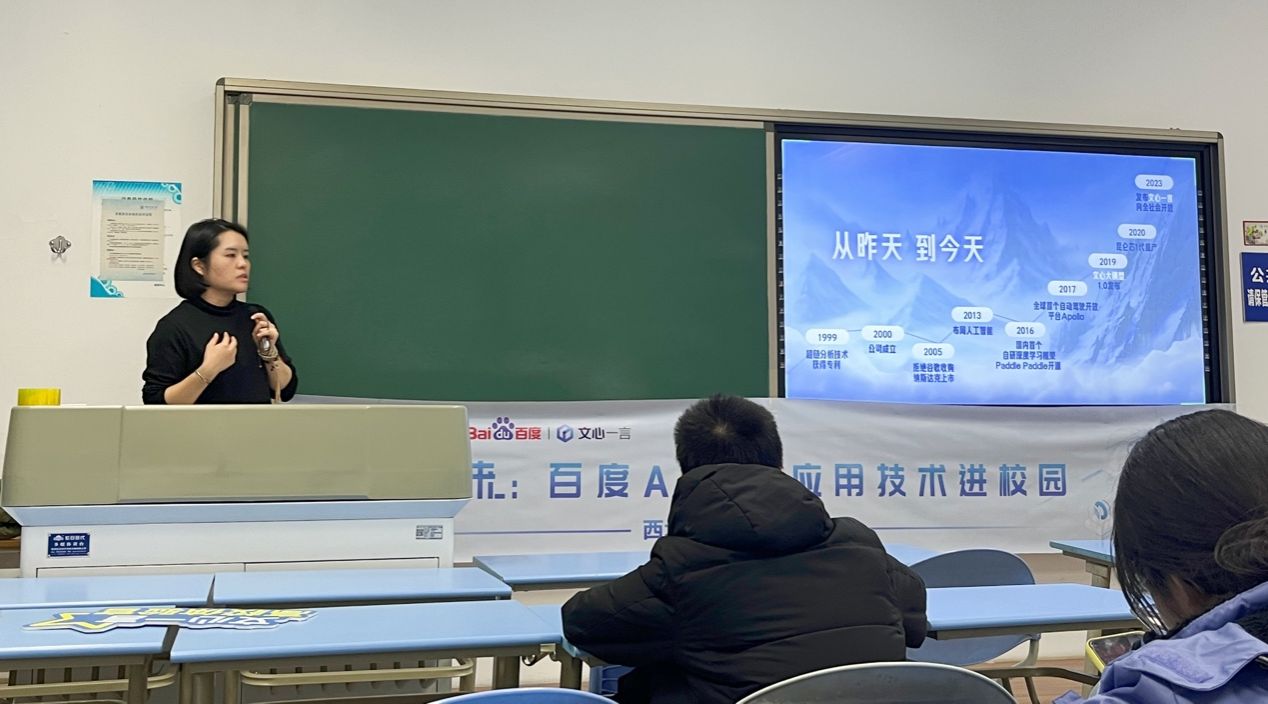报告结束后,与会师生踊跃提问,同学们就AI原生应用、百度文心大模型及AI创新实践平台、百度人才观等话题与专家进行了深入的交流探讨,了解关于实习求职、产业实践相关的前沿信息。
