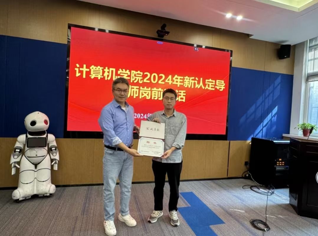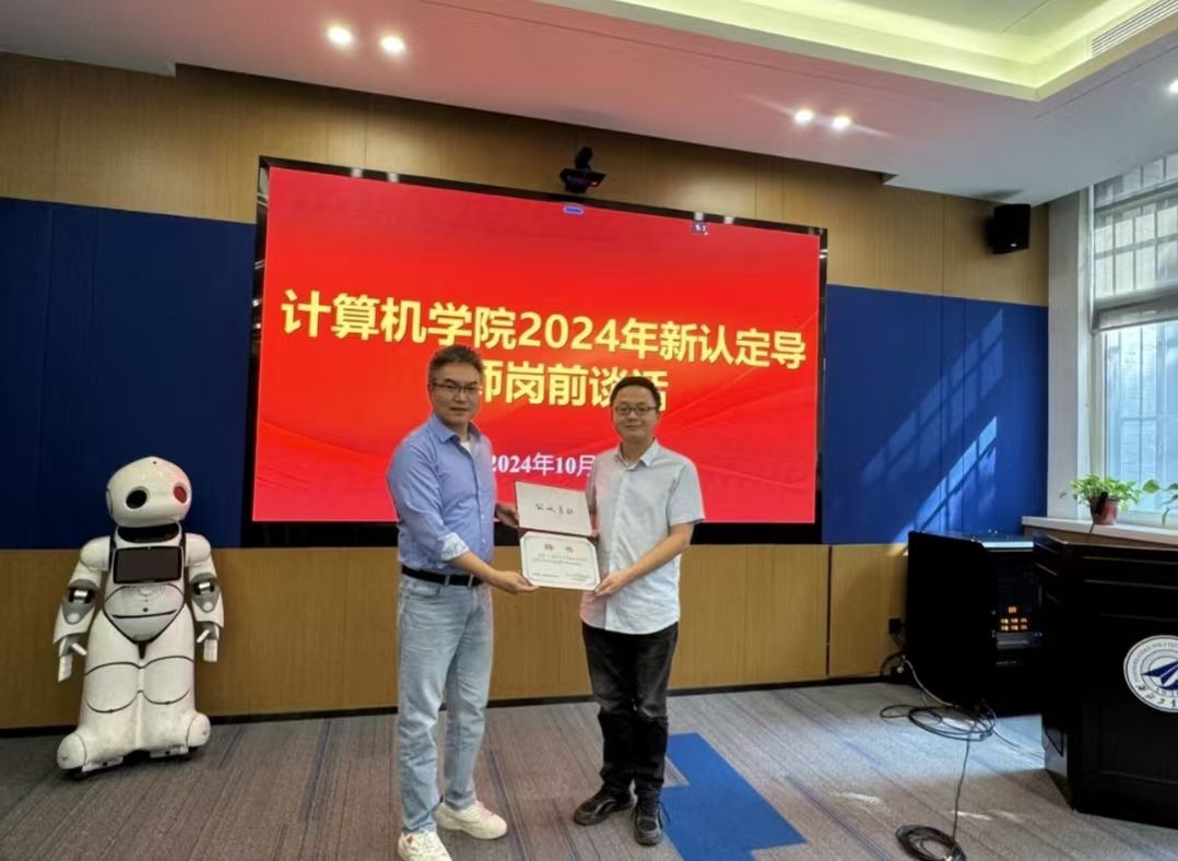 会中,夏勇结合自身研究生培养的经验,要求学院导师应明确学校及学院发展方向和战略目标,以良好的工作作风努力推进“总师型”拔尖创新人才自主培养,为党育英才,为国铸重剑,为学院一流计算机学科建设做出杰出贡献。会后22名新认定硕博导现场签订了导师岗位责任书,夏勇为新认定导师颁发了聘书。