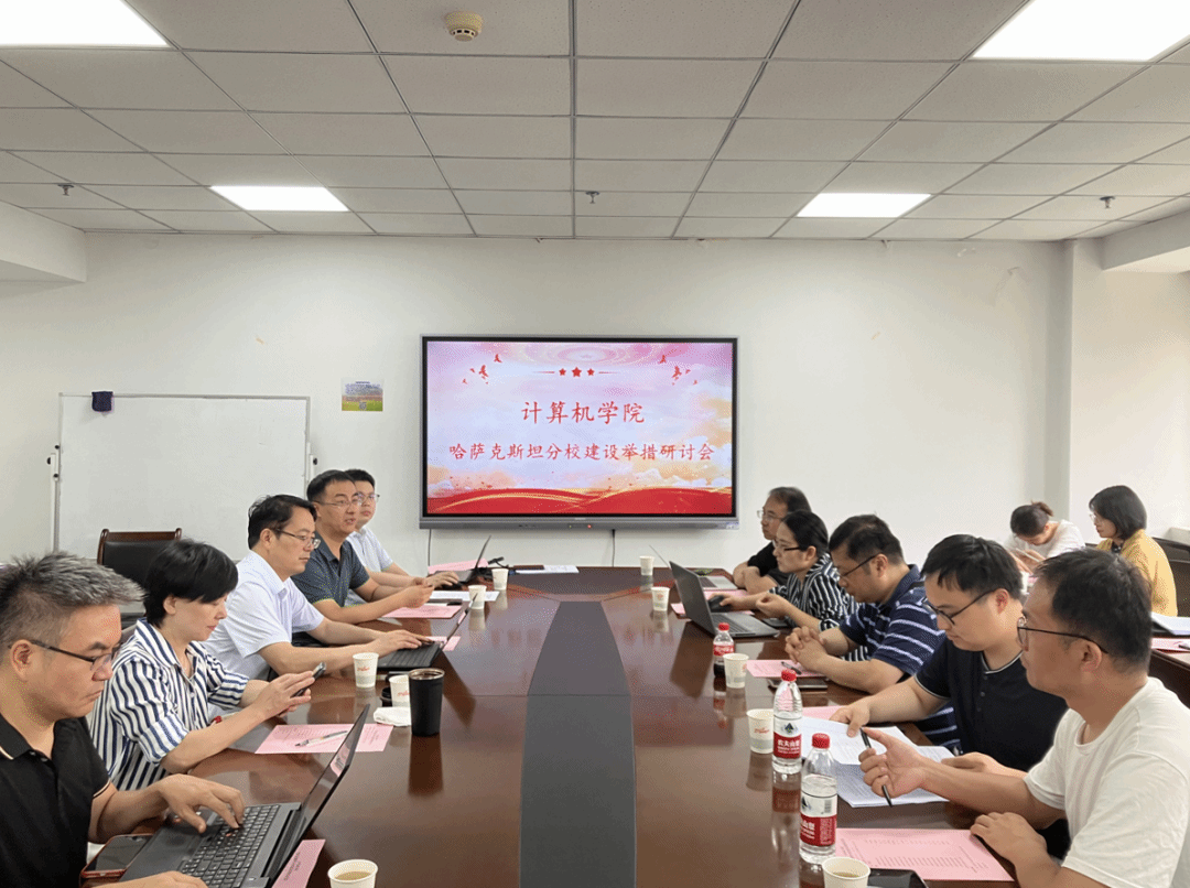 哈萨克斯坦分校的重要指示精神,以及学校7月3日专题党委常委会(扩大)会议精神,为学院在哈分校计算机专业建设的征程中锚定了目标、明晰了方向、确立了使命。会议结合学院承担哈分校具体任务,围绕如何提升招生数量、做好招生宣传,精准定位、强化指导、规范管理、提高培养质量,做好学术交流与科研合作,开展了深入研讨。之后,学院召开了哈分校计算机专业建设推进会,正式组建了哈分校计算机专业建设专班,为专业建设提供了坚强有力的组织保障,并提出了学院“一专班、二基金、三到位、四纳入”的“1234”工作思路,要求全院上下要提高站位,统一思想,锚定目标精心研究,完善举措,合作共赢,办出特色,促进教育出海,实现海外分校高质量办学。