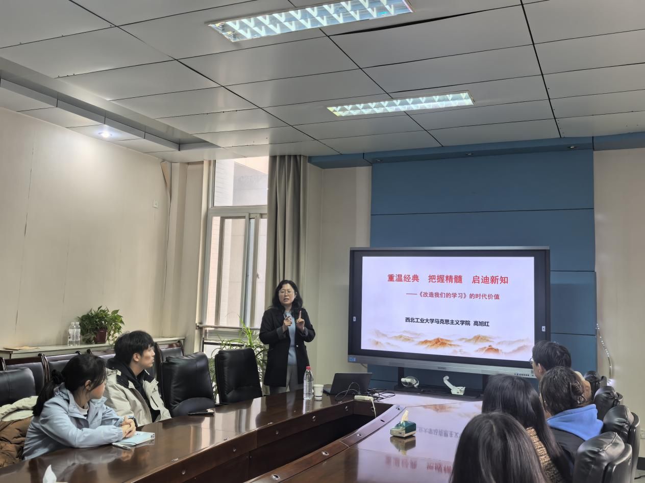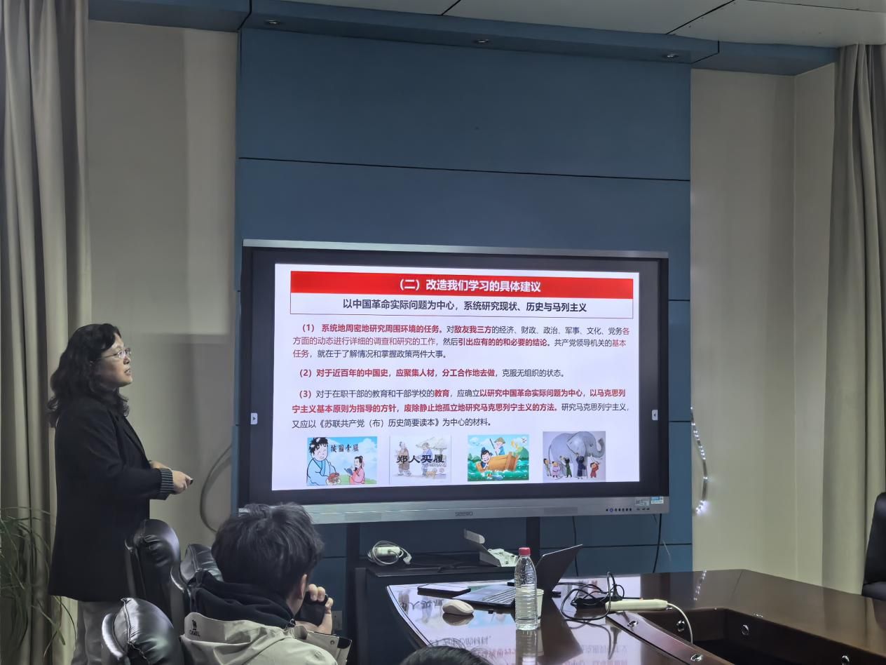 课上,高旭红老师以《改造我们的学习》的创作背景为切入点,系统梳理了全面抗战爆发后,中国面临的复杂世情国情,以及党内教条主义、主观主义等问题对革命事业的影响。通过详实的历史数据与生动案例,主讲人深入解读了毛泽东同志撰写该报告的核心缘起,阐明了”改造学习”是应对时代挑战、破解革命难题的必然选择。