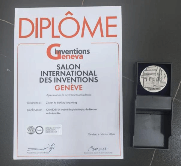 在参展过程中,团队代表以严谨态度完成布展、讲解、演示等各环节。通过技术海报、系统演示素材和应用案例展板,全面呈现了CrowdOS项目的核心架构、技术优势及应用场景,清晰展示项目的创新价值与实际潜力,为现场评审与交流奠定坚实基础。展会期间,项目接受了多轮国际专家评审。评审专家围绕技术创新性、系统性能及应用可行性等方面开展细致质询与深度交流,获得国际评审团高度认可。经评审委员会多轮合议与综合评定,CrowdOS项目最终斩获银奖。这一荣誉不仅是对项目创新成果的权威肯定,也彰显了团队二十余年深耕科研的长期积累与持续突破。