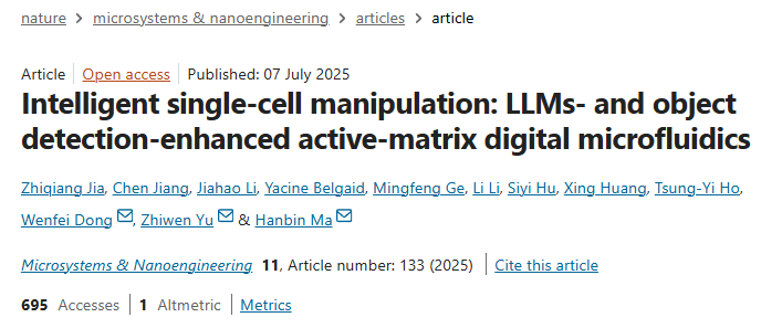近日,人机物融合智能计算团队最新研究成果“Intelligent single-cell manipulation: LLMs- and object detection-enhanced active-matrix digital microfluidics”被Nature子刊《Microsystems and Nanoengineering》录用并在线发表。中国三级片