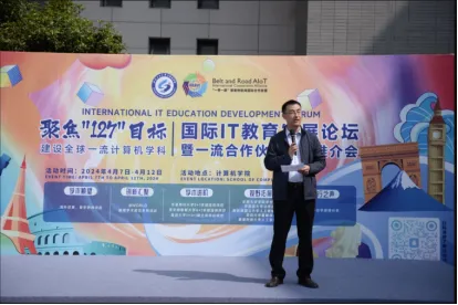 开幕伊始,副院长郭斌以热情洋溢的欢迎致辞揭开了会议的序幕。他强调了国际IT教育在当前信息化社会中的重要性,并概述了其对实现127战略目标的推动作用。举办本次活动旨在提升学生的国际竞争力和全球视野,帮助他们赴海外顶尖学府深造,从而在学术上取得更高成就。